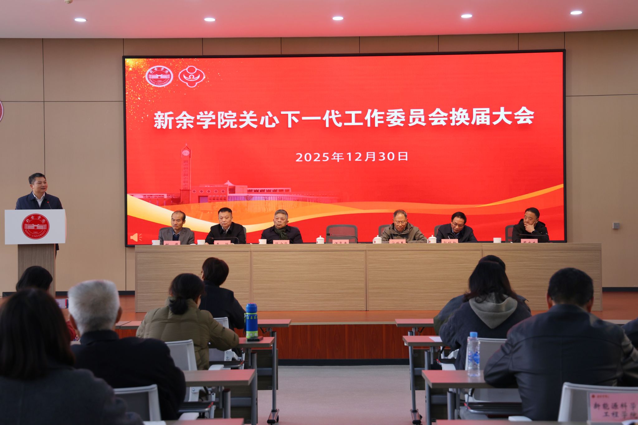 2025年12月30日上午,我校关心下一代工作委员会换届大会在思源厅举行。校党委书记伍复康,老领导宁世春、简少华、郭瑞新、李敏,校党委委员、组织部部长周文生,校党委委员、统战部部长姚伟出席会议。校关工委新一届班子成员、关工委全体成员,各委员单位负责人及各二级学院关工委主任等50余人参加了会议。关工委秘书长、离退休工作办公室肖娟主持会议。